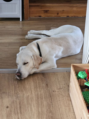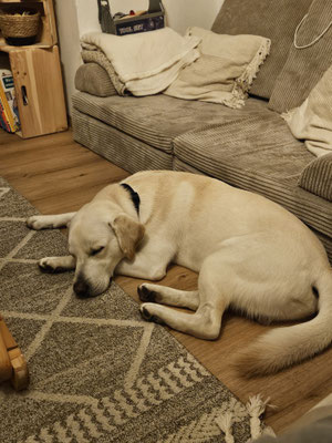 danke der Nachfrage. Also ich muss sagen, für die wenigen Tage hat er sich super eingelebt und ist trotz der ganzen Umstellungen, die er erlebt hat, wirklich brav. Man kann ihn zum Beispiel auch schon ein paar Stunden alleine lassen, wo er dann meistens einfach nur schläft.